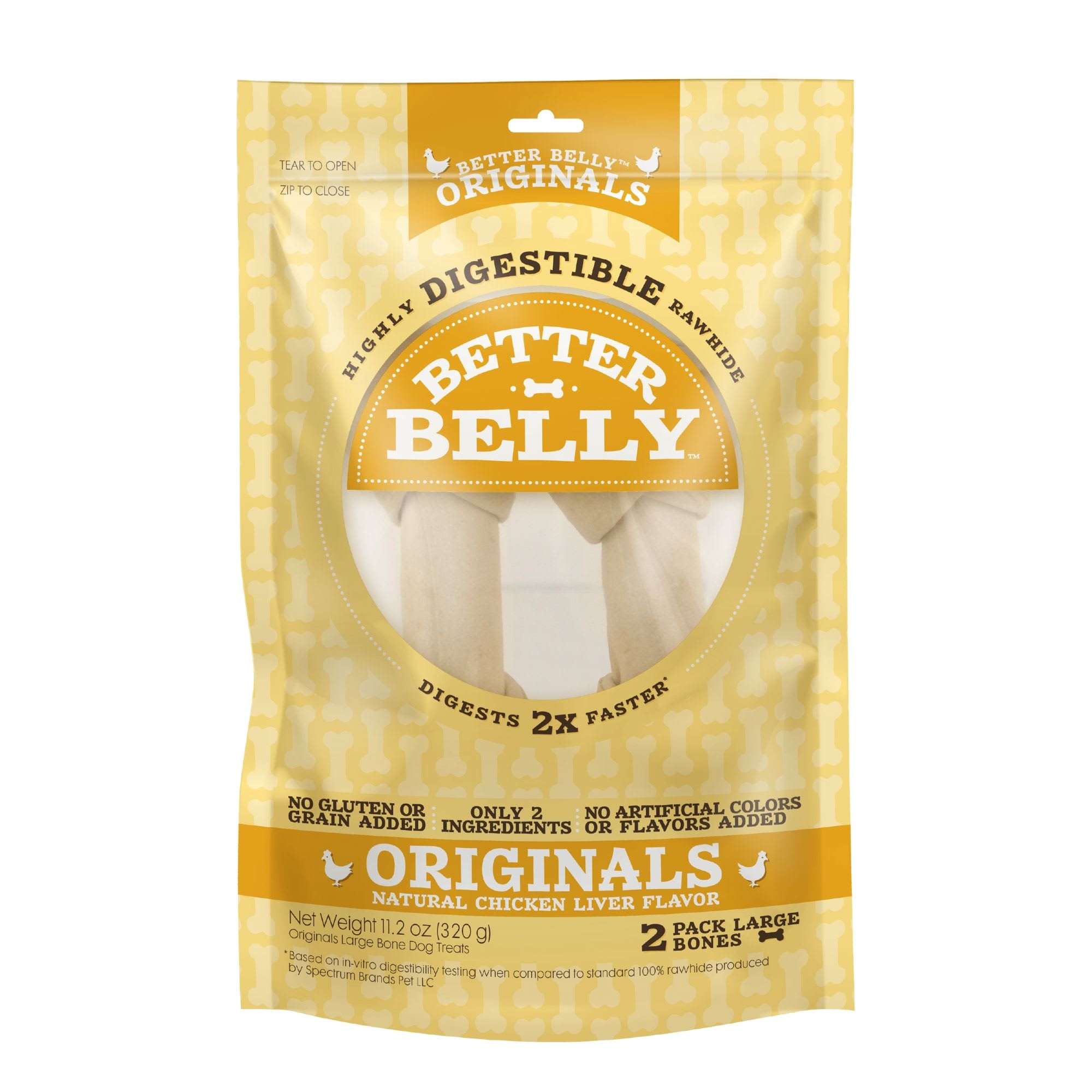 Better belly's unique manufacturing process helps break down pork hide fibers so your pup can digest them faster. Better belly—a spectrum brand—was created with a determination and dedication to create a better rawhide chew that was both safe and digestible. With no grain, gluten, artificial preservatives, artificial colors or flavors added, you can treat your dog to a chew you both feel good about. We are here to help you find the root cause of your symptoms and heal your body from the root up. Standard rawhide is made of fibers that link together, making the rawhide flexible but tough to break down. You should consume approximately 2 grams of fat for every 1 gram of protein. Each chew satisfies your dog's natural instinct to chew while using the same abrasive chewing action to help clean teeth and freshen breath. Our better belly production process breaks down the collagen fibers to make digestion quick and easy. But if your pup needs a chew with no added chicken, try our new porkhide chews to satisfy taste buds and tummies! Free shipping on orders over $25 shipped by amazon. 65 ($0.47/count) $4.42 with subscribe & save discount. Our production process breaks down the collagen fibers to make digestion quick and easy. In rawhide bones & chews.